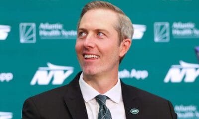 Jets GM Darren Mougey Raises Eyebrows With First Firing New York Jets general manager Darren Mougey reacting in the middle of a press conference. The New...